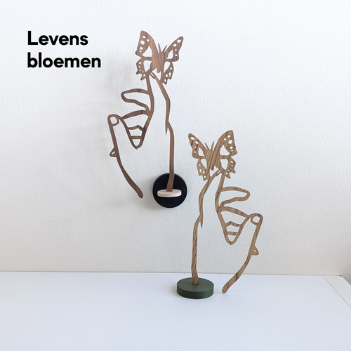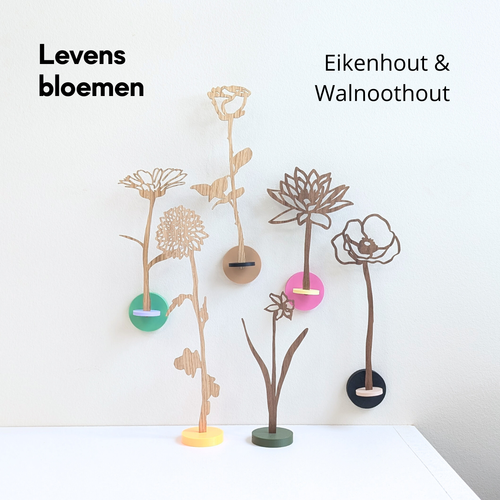 Levensbloemen eiken- en walnoothout (bloem + houder) | Joeff