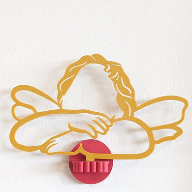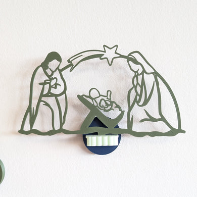 Este hermoso estante de pared hecho de fieltro PET sostenible con figuras de madera simboliza a tu familia.