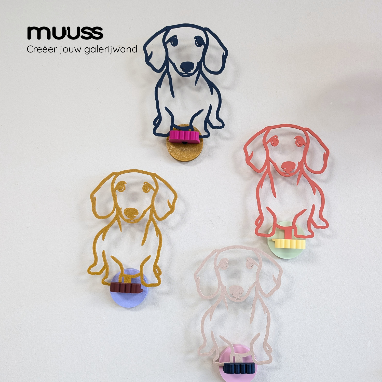 Ook zo gek op teckels? Maak je Muuss muur nog persoonlijker met de Muuss Teckels. Deze teckels passen net als de andere Muuss kunststukken perfect in de basishouder.