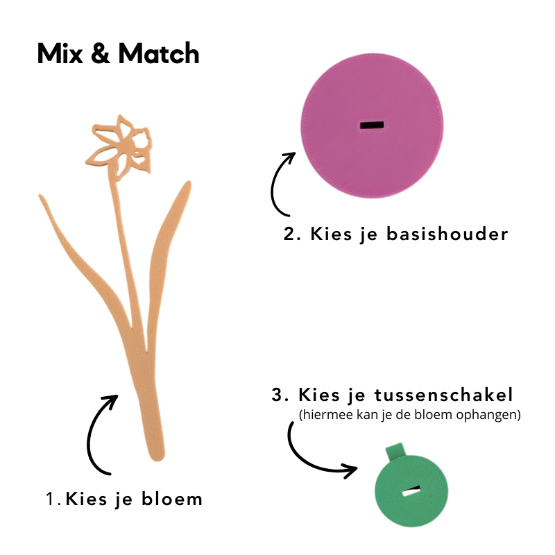 Kies de bloem, houder en eventuele muurschakel en voeg deze toe aan je winkelmandje. Kom daarna terug naar de productpagina om je volgende bloem samen te stellen.