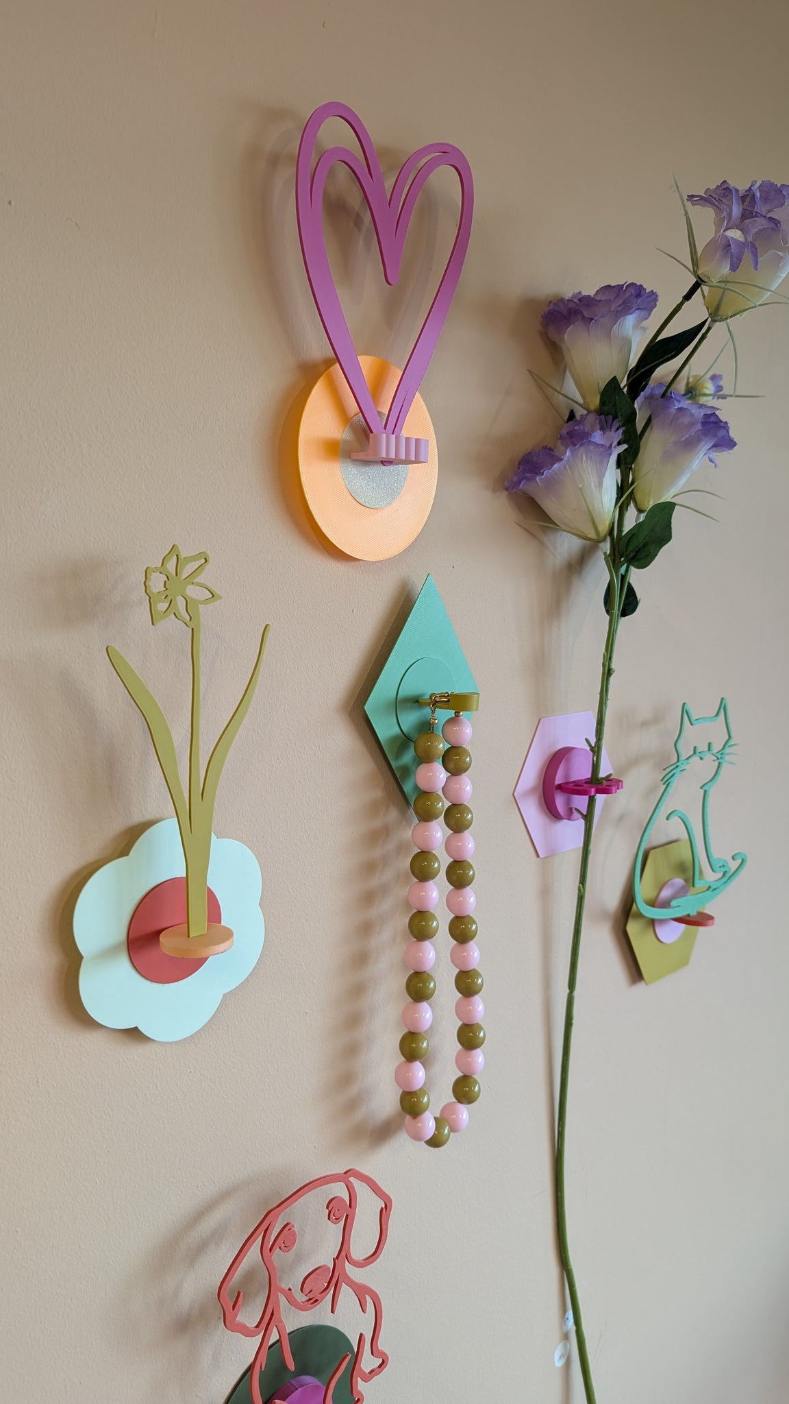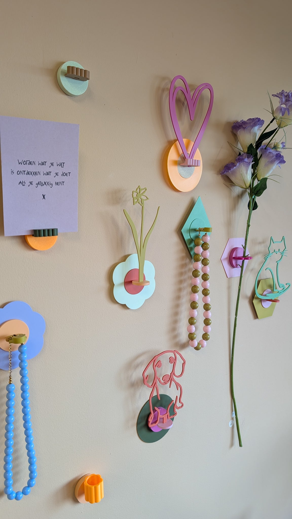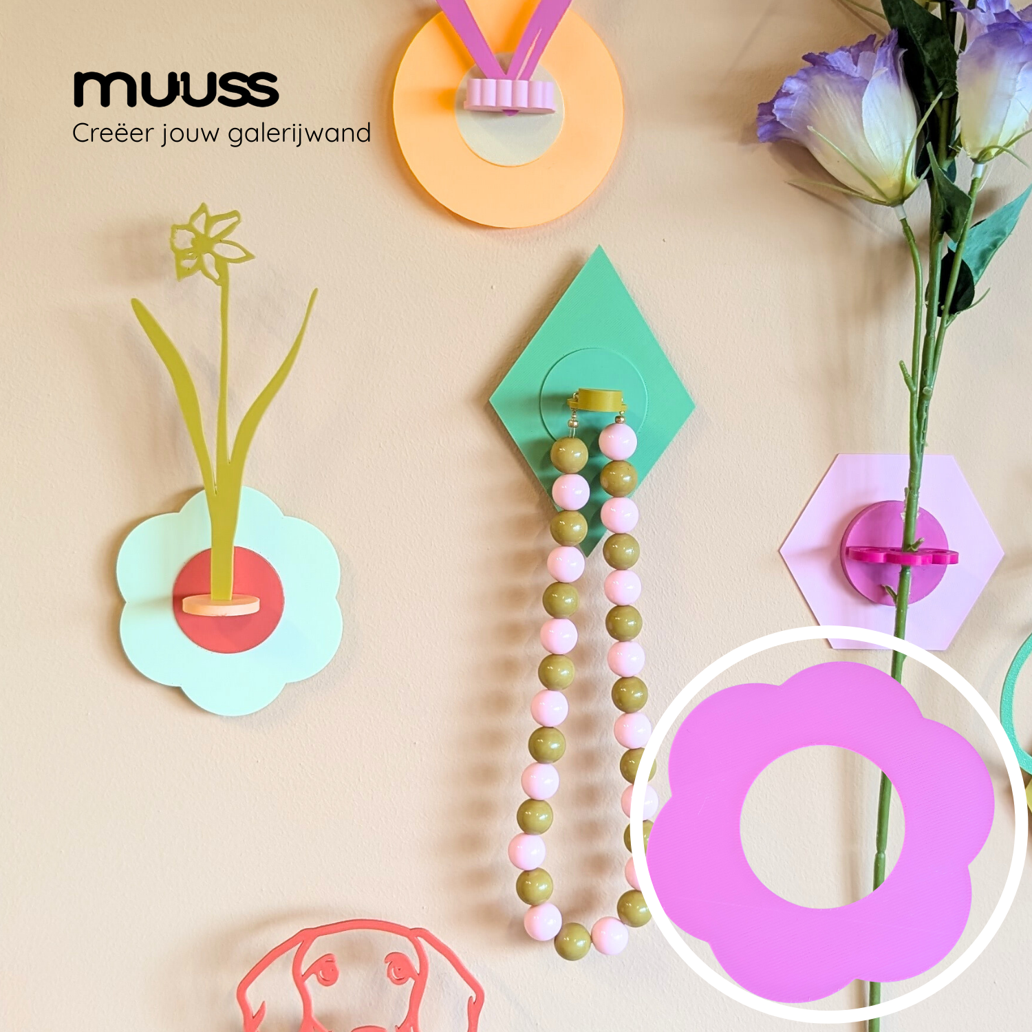 Met het Muuss Tussenblad geef je je basishouder eenvoudig een nieuwe uitstraling. Wissel vormen, kleuren en schakels af en pas je wand aan aan het seizoen, je interieur of je stemming. Zonder boren, zonder vaste opstelling — volledig modulair.